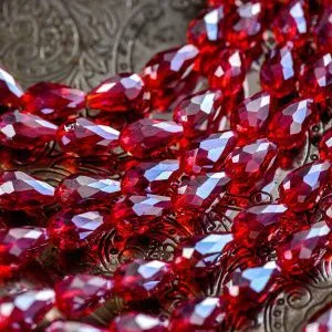бусина "капля", граненая, стекло, цвет красный радужный, 15х10 мм