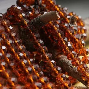 бусина, стекло биконус 6, цвет красный, 6 мм