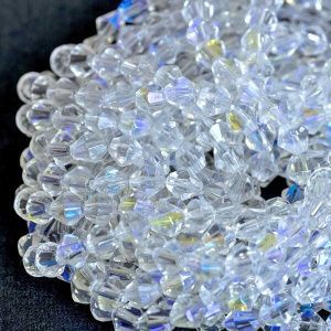 бусина, стекло биконус 6, цвет прозрачный радужный, 6 мм