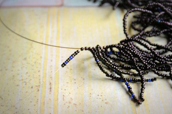 12. Для первого раза советую взять однотонный бисер или с вкраплениями, как на нашем примере.