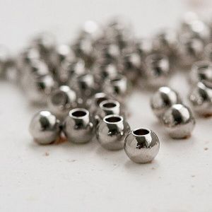 5. Поскольку отверстие бейла обычно сильно шире толщины пина, то, чтобы бейл не болтался между крупных ронделей, между ними нужно нанизать 2-3 бисерины, по диаметру входящих в отверстие бейла, чтобы уплотнить его посадку. Зажимаем конец пина в виде петли.