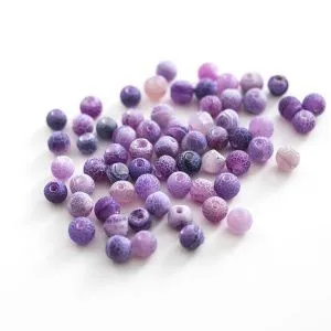 1. Начнем с фиолетовых бусин диаметра 6 мм. Берем один пин и нанизываем на него бусину.