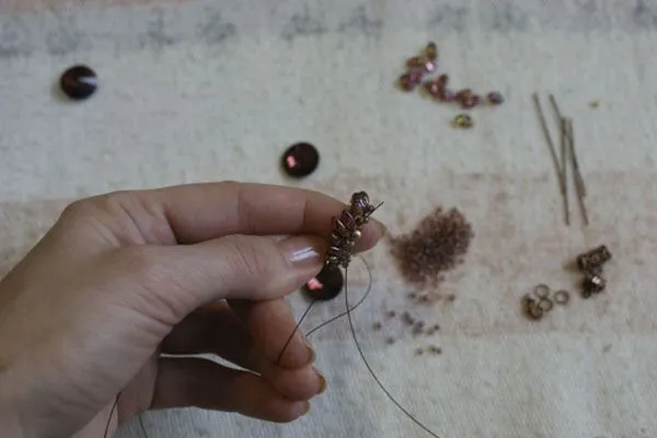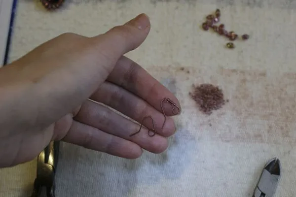 29. На швензы нанизываем по 6 бисеринок, при желании их можно подклеить. Присоединяем швензы к петельке на наших кабошонах.