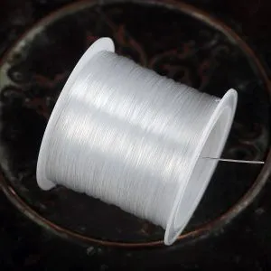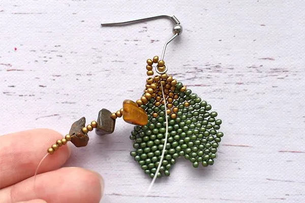 16. Другим концом лески проходим параллельно. Затягиваем, расправляем камушки и с изнанки делаем узелок и убираем лишнюю леску.