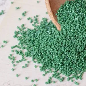 1. Приступим к заготовкам листочков. Листочки плетем в технике мозаичного плетения из светло-зеленого бисера.