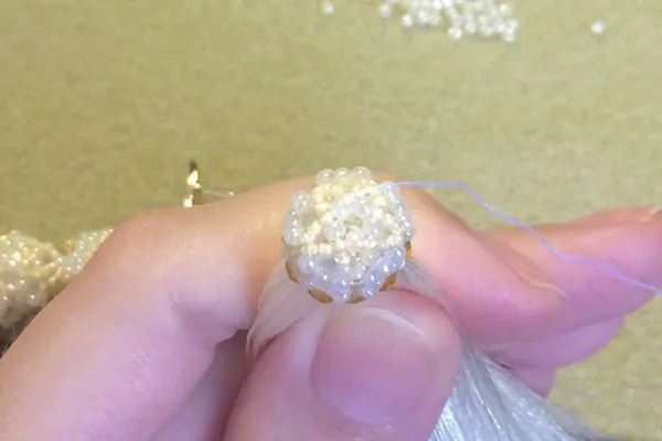 8. Проходим второй ряд 15/0 и хорошо затягиваем.