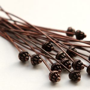 8. Чтобы сделать серьги своими руками, соберите бусины на пин с фигурной головкой, а на другом конце с помощью круглогубцев сделайте петельку.
