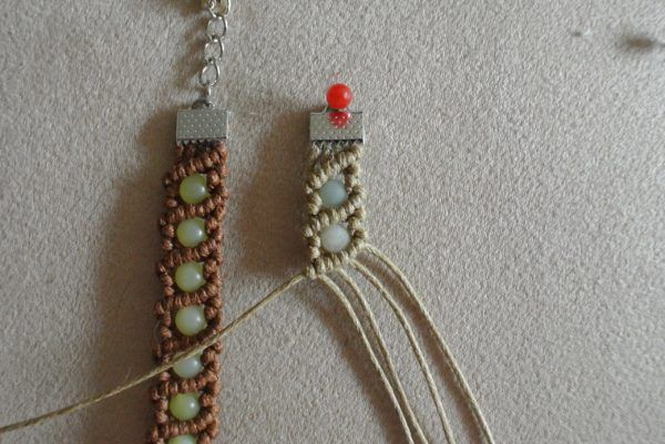 5. Центральную нить не используем для плетения, надеваем на нее бусинку.