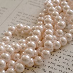 4. Далее начинаем нанизывать бусинки: 1 жемчужная бусинка, 1 перламутровая бусина, 1 жемчужная и т.д. Доходим до конца проволоки и делаем петлю.