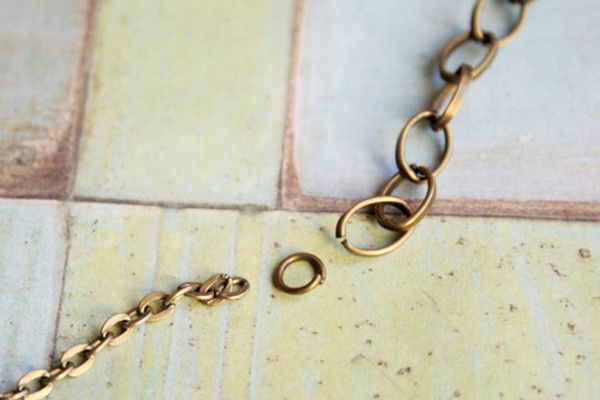 12. с другой стороны, через колечко, присоединим отрезок цепи с размером звена 5х6, для того чтобы можно было регулировать длину колье.