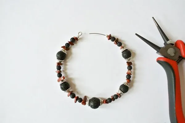 3. Нанизываем все бусины и шапочки для бусин согласно фото.